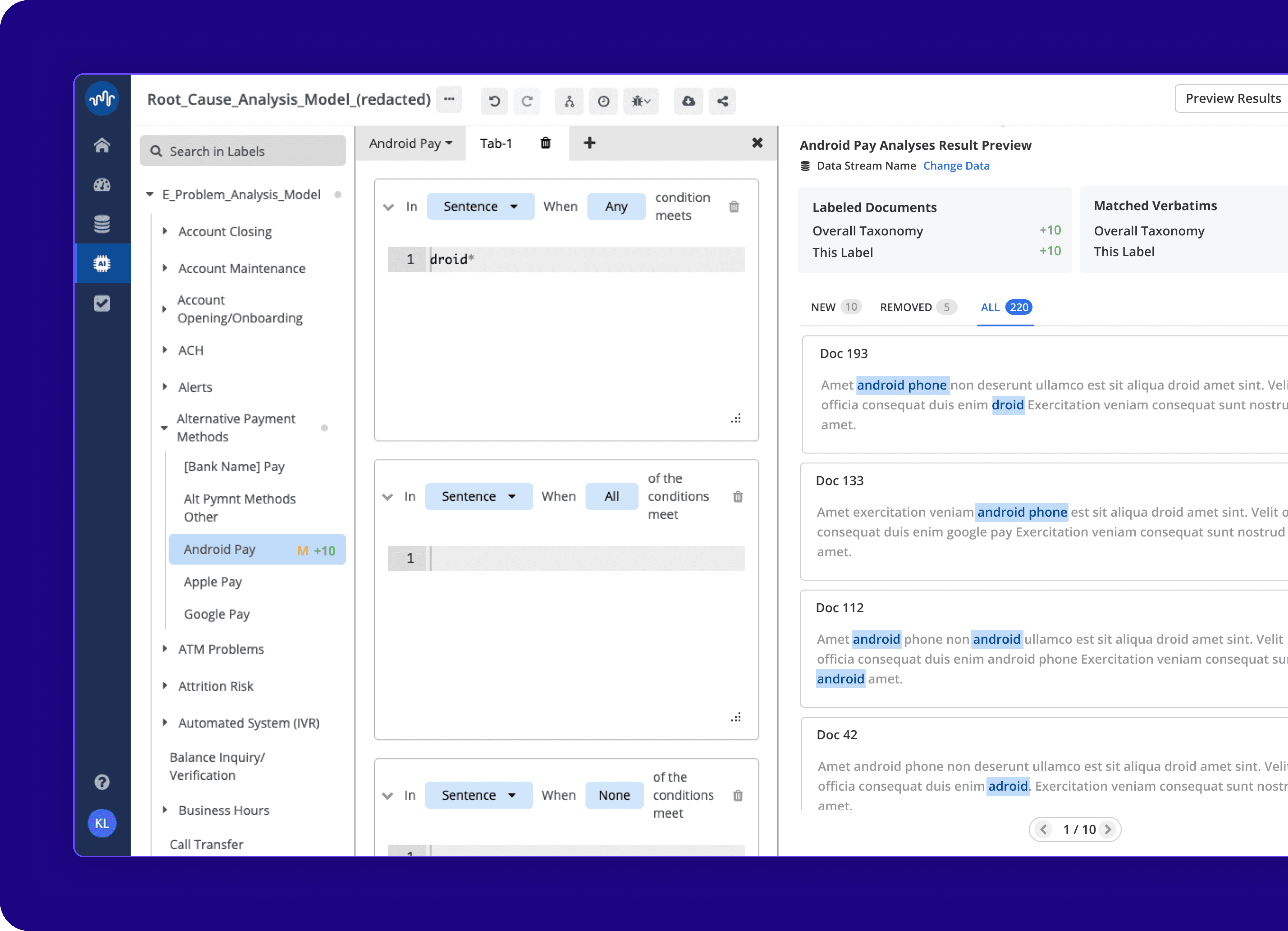 Stratifyd Taxonomy Editing Experience